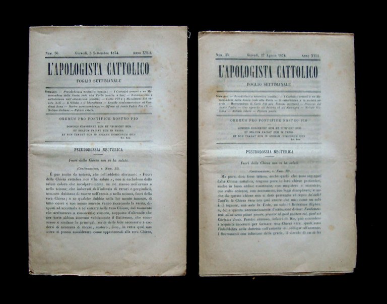 Cattolici Armeni Memorandum Santa Sede 1874 due numeri L'Apologista Cattolico