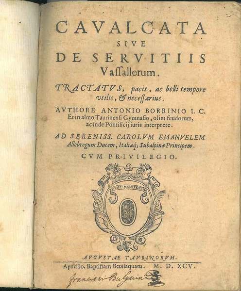 Cavalcata sive De servitiis vassallorum. Tractatus, pacis, ac belli tempore utilis, & necessarius. Authore Antonio Borrinio I.C. et in almo Taurinensi Gymnasio, olim feudorum, ac inde Pontificij iuris interprete .