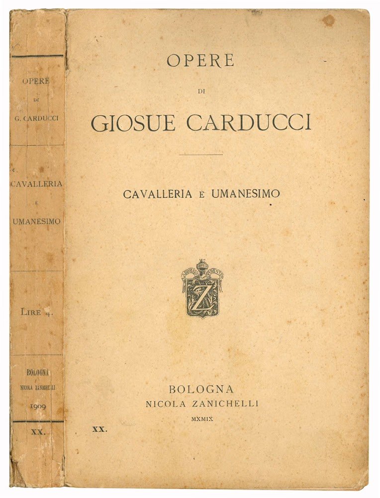 Mm. 197x123. Pp. [4], 474, [6]. Carta uniformemente brunita. Brossura editoriale con titolo al dorso e alla copertina anteriore. Minime mancanze al dorso. Il volume appartiene alla collana "Opere di Giosue Carducci", n. XX.
