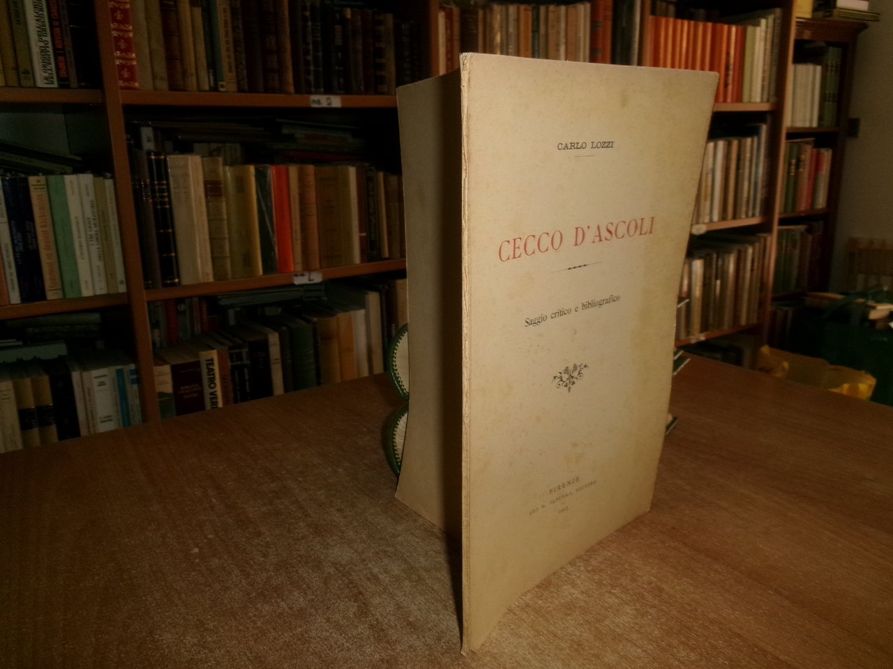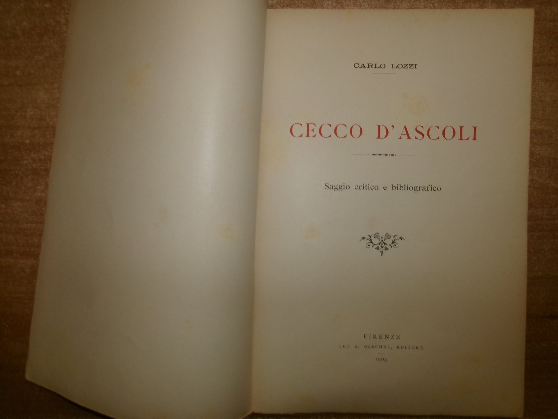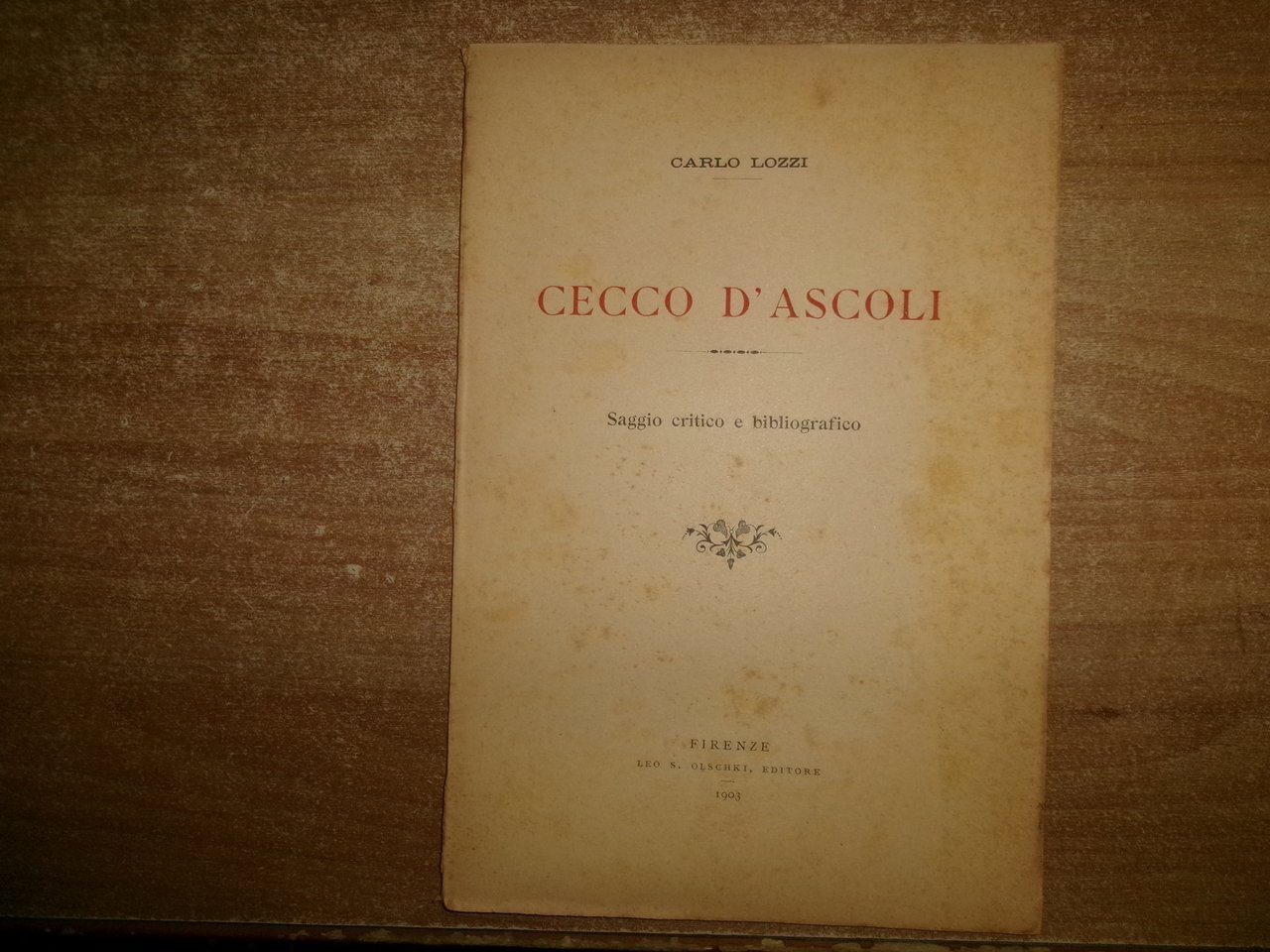 CARLO LOZZI. Firenze, Leo S. Olschki, 1903. CECCO D' ASCOLI. Saggio critico e bibliografico. In-8° grande, br. orig. 39 pp. con alcuni fac-simili b.t. Normali segni del tempo ma molto ben conservato. Neg. mob. 10 in busta trasp.