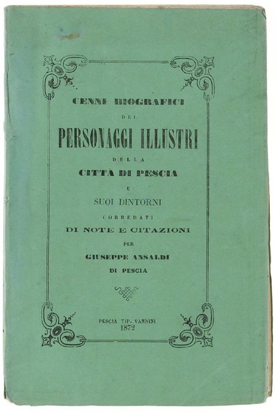CENNI BIOGRAFICI DEI PERSONAGGI ILLUSTRI DELLA CITTA' DI PESCIA E SUOI DINTORNI corredati di note e citazioni. | Libri antichi e moderni | Ansaldi Giuseppe.