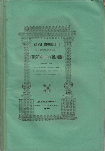 Cenni biografici sul grande Ammiraglio Cristoforo Colombo scopritore delle indie occidentali, e consignore del Castello di Cuccaro in Monferrato