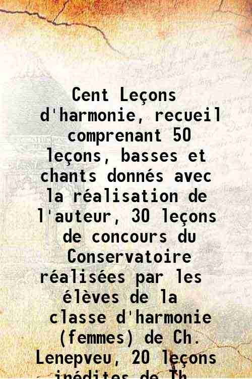 Cent LeÁons d'harmonie, recueil comprenant 50 leÁons, basses et chants donnÈs avec la rÈalisation de l'auteur, 30 leÁons de concours du Conservatoire rÈalisÈes par les ÈlËves de la classe d'harmonie (femmes) de Ch. Lenepveu, 20 leÁons inÈdites de Th. Dubo 1898