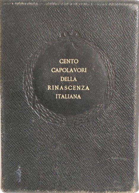 in-16, pp. (10), C, leg. p. pelle nera edit. con tit. oro al piatto ant., segnalibro, tagli dorati. Con 100 belle tavv. protette da veline raff. capolavori del Rinascimento italiano. Dedica sulla prima cb. Bell'esempl. [505]