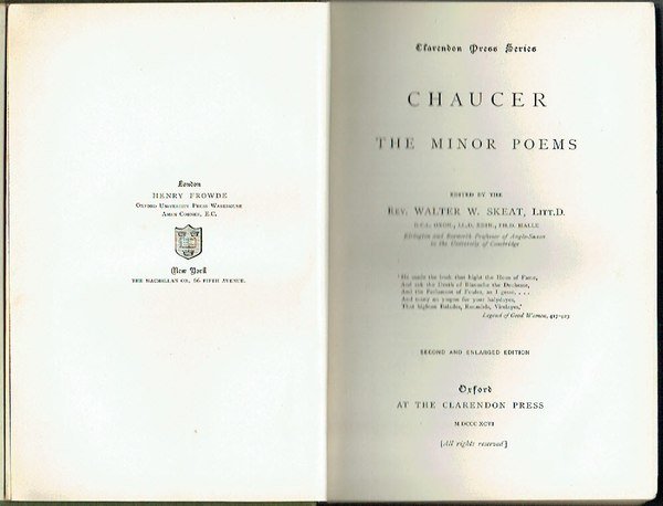 Chaucer : The Minor Poems | Libri antichi e moderni | Chaucer & Rev. Walter W. Skeat (Editor)