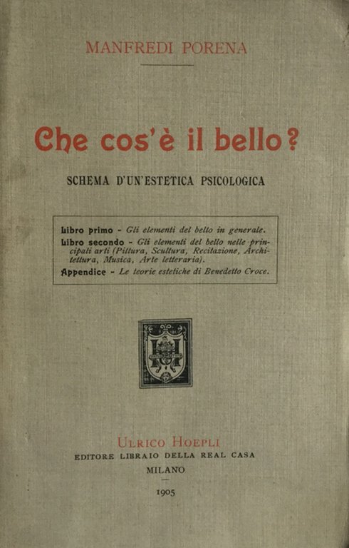 Che cos'è il bello? Schema d'un'estetica psicologica. Porena Hoepli 1905