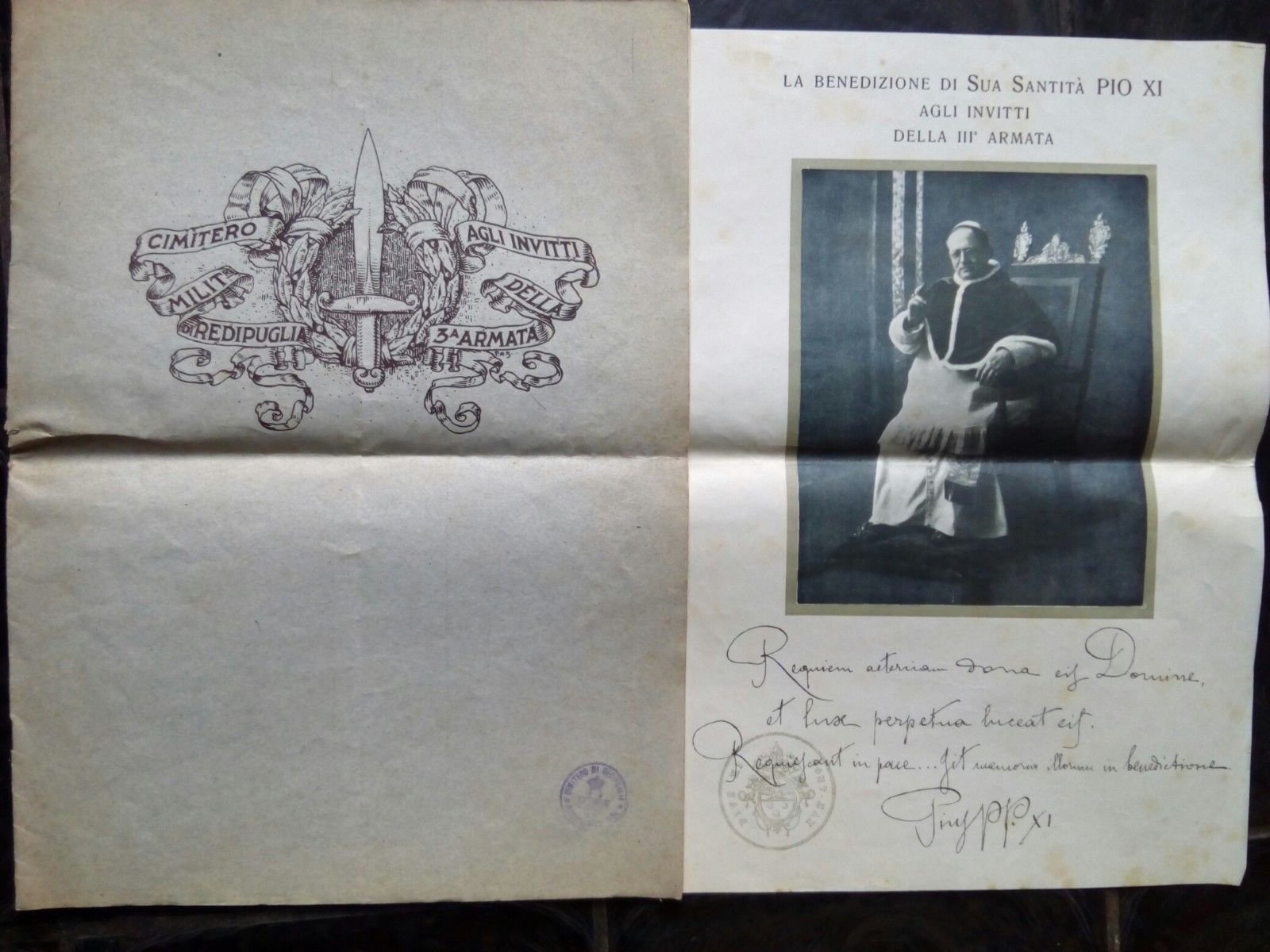 Cimitero Militare di RedipugliaAgli Invitti della 3^ Armataformato giornale con poster di PIO XI in buone ripiegato(150 gr.)E20002/12