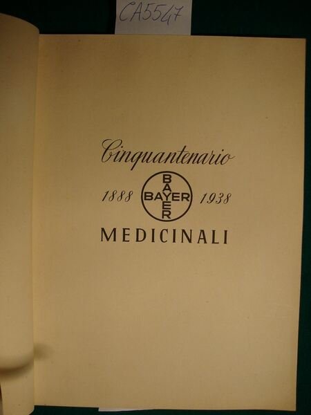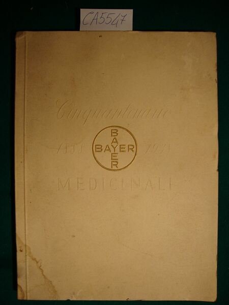 Monografia pubblicata in occasione del cinquantenario dei Medicinali Bayer, in cui sono brevemente illustrati cronologicamente nella loro importanza scientifica e pratica i risultati della produzione Bayer nel mezzo secolo trascorso. corredato da ill. in b.n. n.t. e f.t - DETTAGLIO DELLE CONDIZIONI : Segni d'uso ai piatti della coperta con marcati aloni , macchie e minuto strappetto al piatto posteriore, Alcuni aloni alle pagg. di guardia. - .