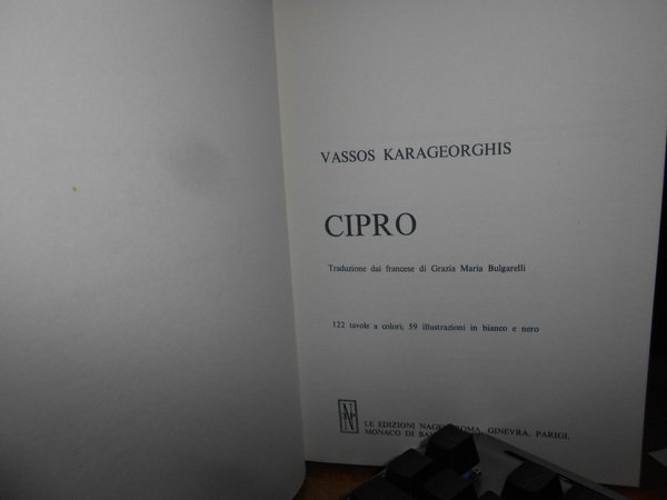 VASSOS KARAGEORGHIS. Roma, Nagel Edizioni, 1977. CIPRO. In-8°, similpelle verde con titolo in oro al dorso, sovracopertina ill. a col. 255 pp. con numerose ill. fotografiche a colori e in bianco e nero. Come nuovo. Uff. stanzetta mob. a sinistra