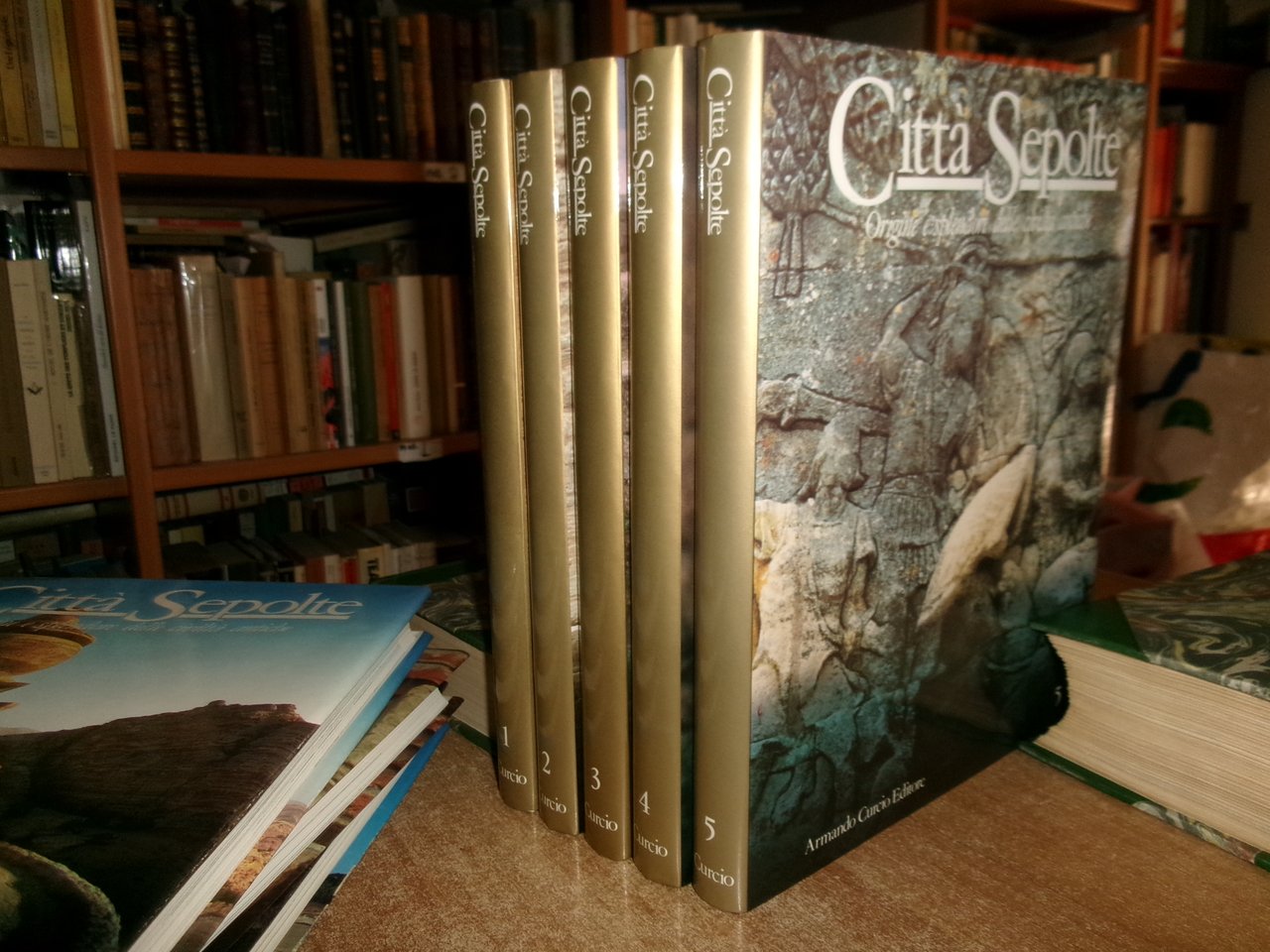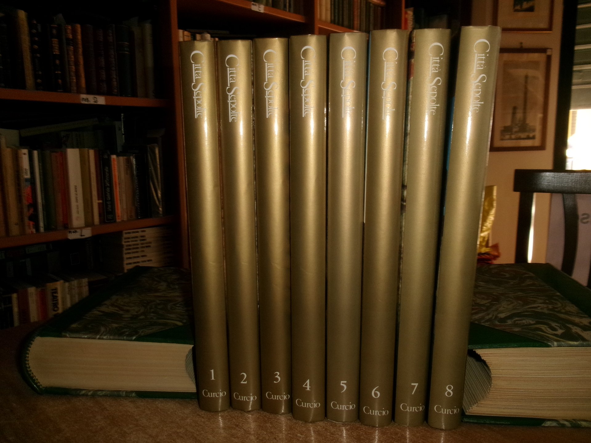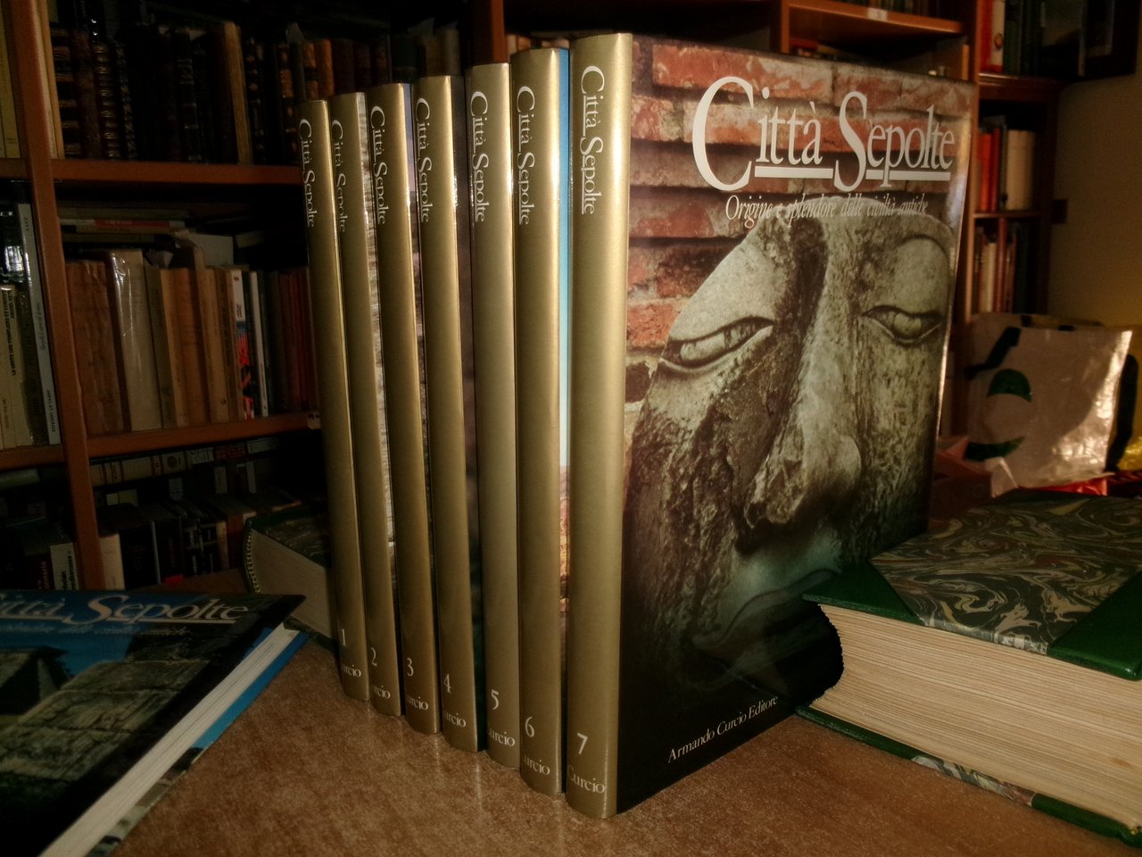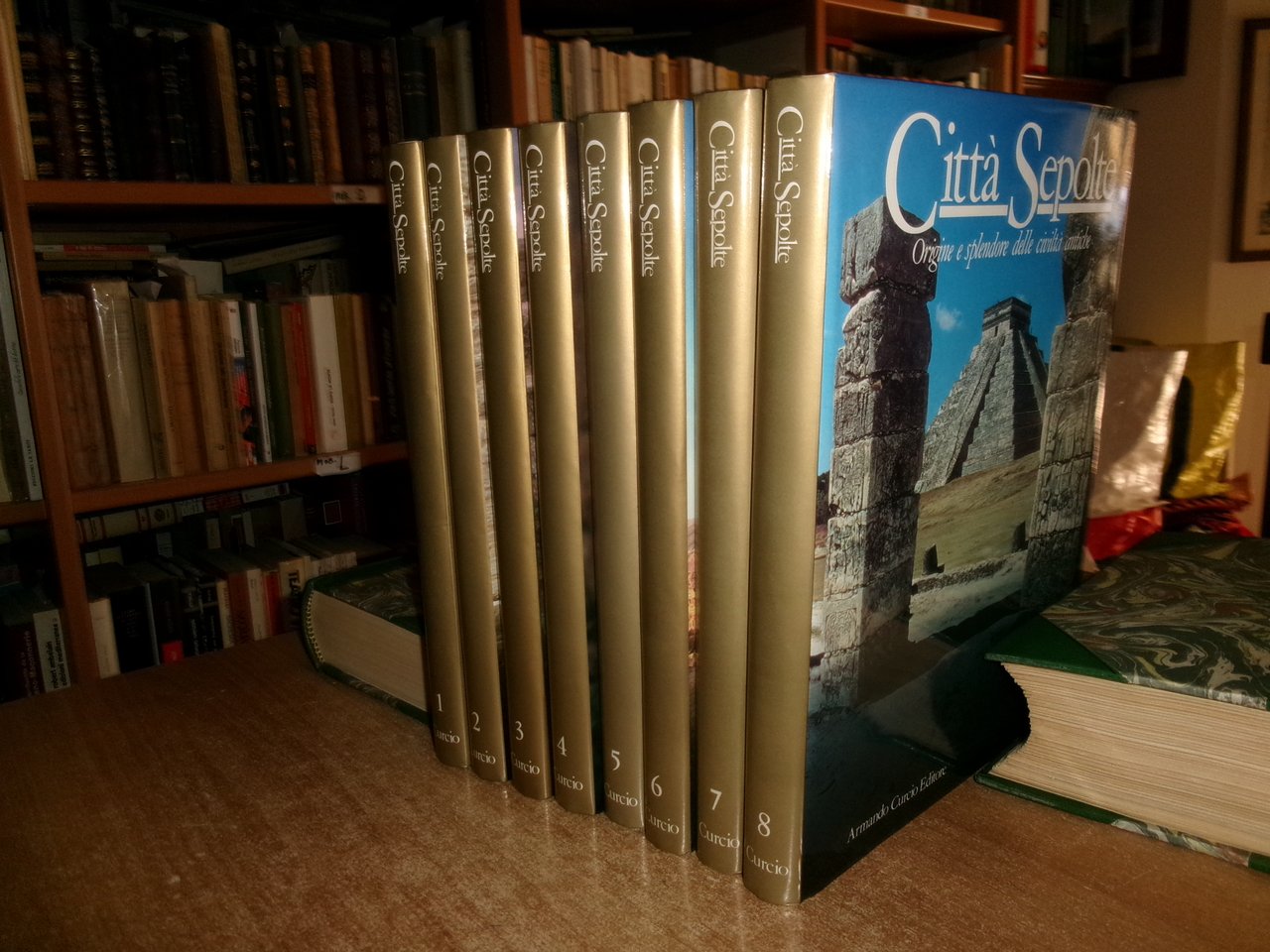 Roma, Curcio, Armando (s.d). Città sepolte. Origini e splendore delle civiltà antiche. 8 volumi in-4°, tela edit. con sovracopertine ill. a col. 2304 pp. con innumerevoli illustrazioni a colori, carte geografiche, anche a piena pagina n.t. Come nuovo/nuovo. Uff. stanzetta a destra.