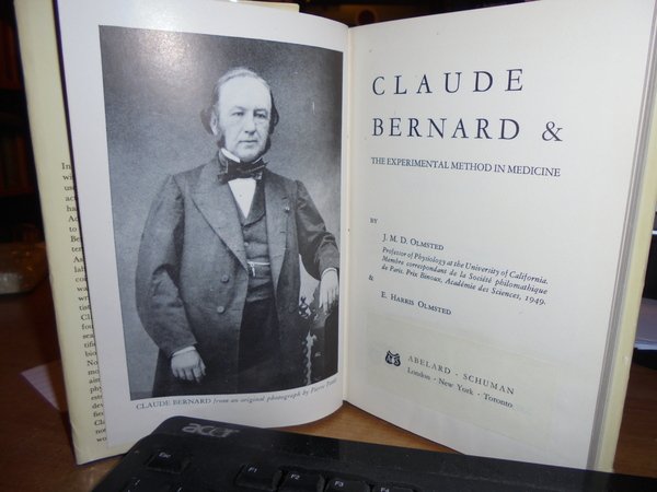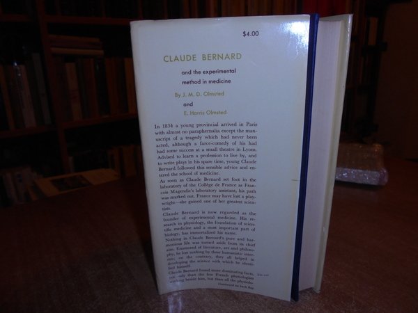 J.M.D. OLMSTED/E. HARRIS OLMSTED. London - New York - Toronto, Abelard-Schuman, 1952. CLAUDE BERNARD & Experimental Method in Medicine. In-8° picc. cartonato edit. con titolo in oro al dorso e sovracopertina. (vi), 277 pp. compreso il ritratto fotografico di Bernard a fronte del frontespizio. In ottimo stato di conservazione. Uff. C - IV - 4 - 2