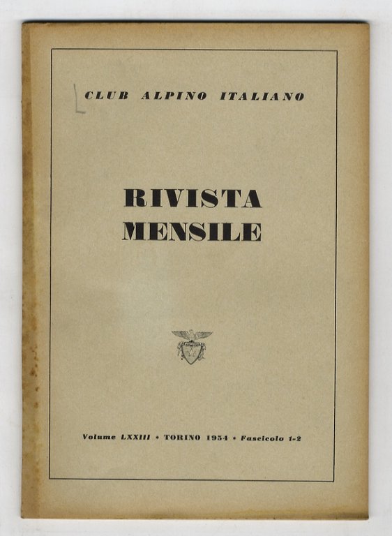 Torino, CAI, 1954, fascicoli 12 legati in 7 (cinque sono numero doppi), in-8, brossure editoriali, pp. 456, VIII. Con numerose illustrazioni n.t. e f.t.Condizioni, più che buone. L'annata: