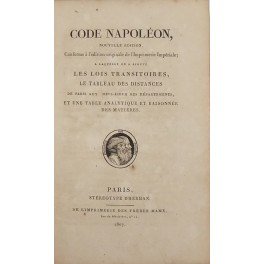 Code Napoleon nouvelle edition conforme à l'edition originale de l'Imprimerie Imperiale, a laquelle on a ajoute. Les Lois Transitoires et une table analytique et raisonnee des matieres