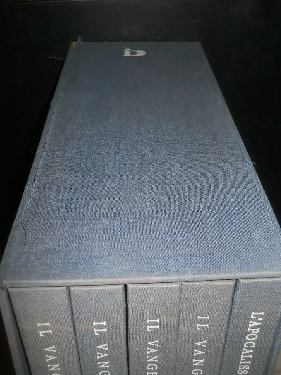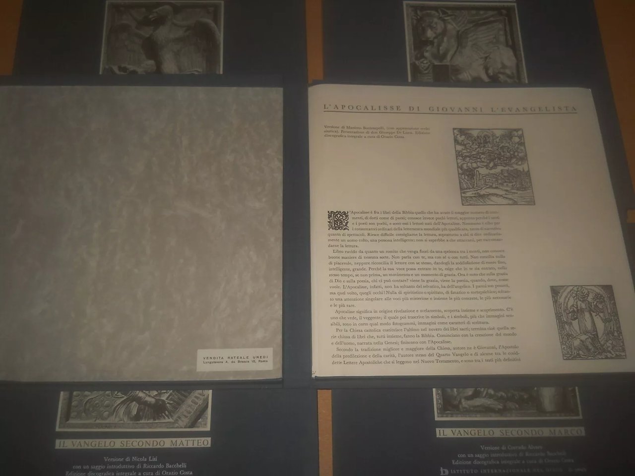 - 5 cofanetti con formato cm 33 x 34 contenenti ciascuno foglio di 4 pagine e 2 o 3 dischi 33 giri (2 dischi x l'Apocalisse e il Vangelo secondo Marco) - i 5 cofanetti sono inseriti in un singolo cofanetto che li raccoglie