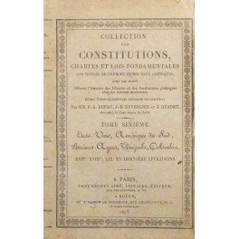 Collection des Constitutions, chartes et lois fondamentales des peuples de l'Europe et des deux Ameriques . Tome VI - Etats Unis; Amerique du Sud; Buenos Ayres; Venezuela; Colombia
