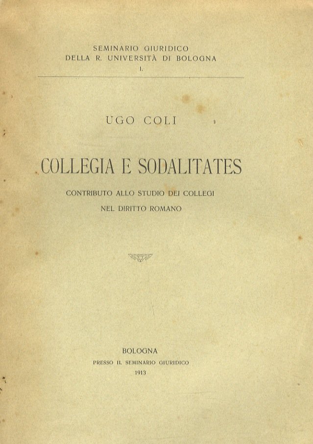 Collegia e sodalitates. Contributo allo studio dei collegi nel diritto romano. | Libri antichi e moderni | Coli Ugo.