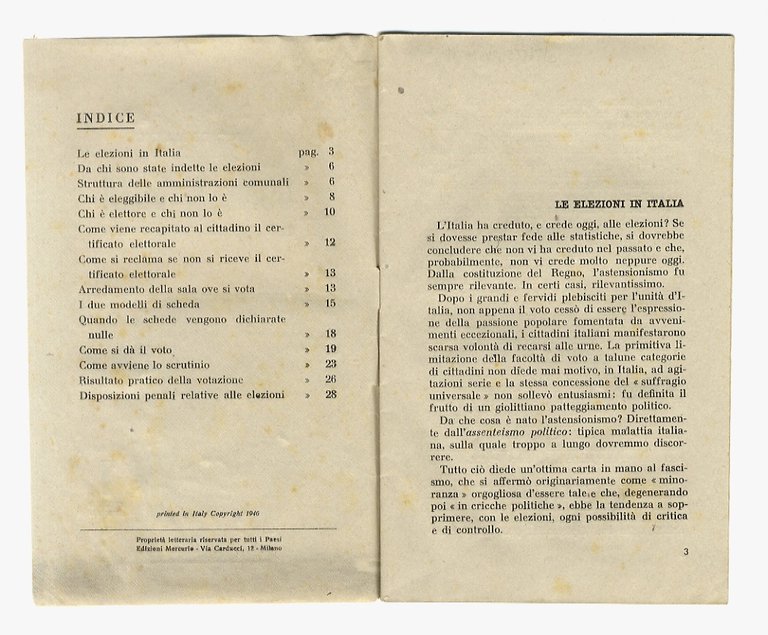 Milano, Edizioni Mercurio, 1946, in-8 piccolo, br. editoriale, pp. 29, [1]. Ex-libris Caproni sulla copertina anteriore.