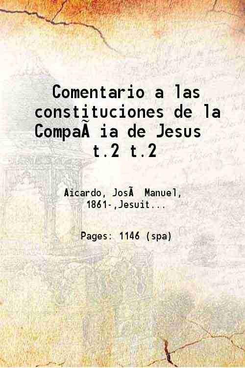 Comentario a las constituciones de la CompaÒia de Jesus Volume 2nd 1920 | Libri antichi e moderni | Josè Manuel Aicardo
