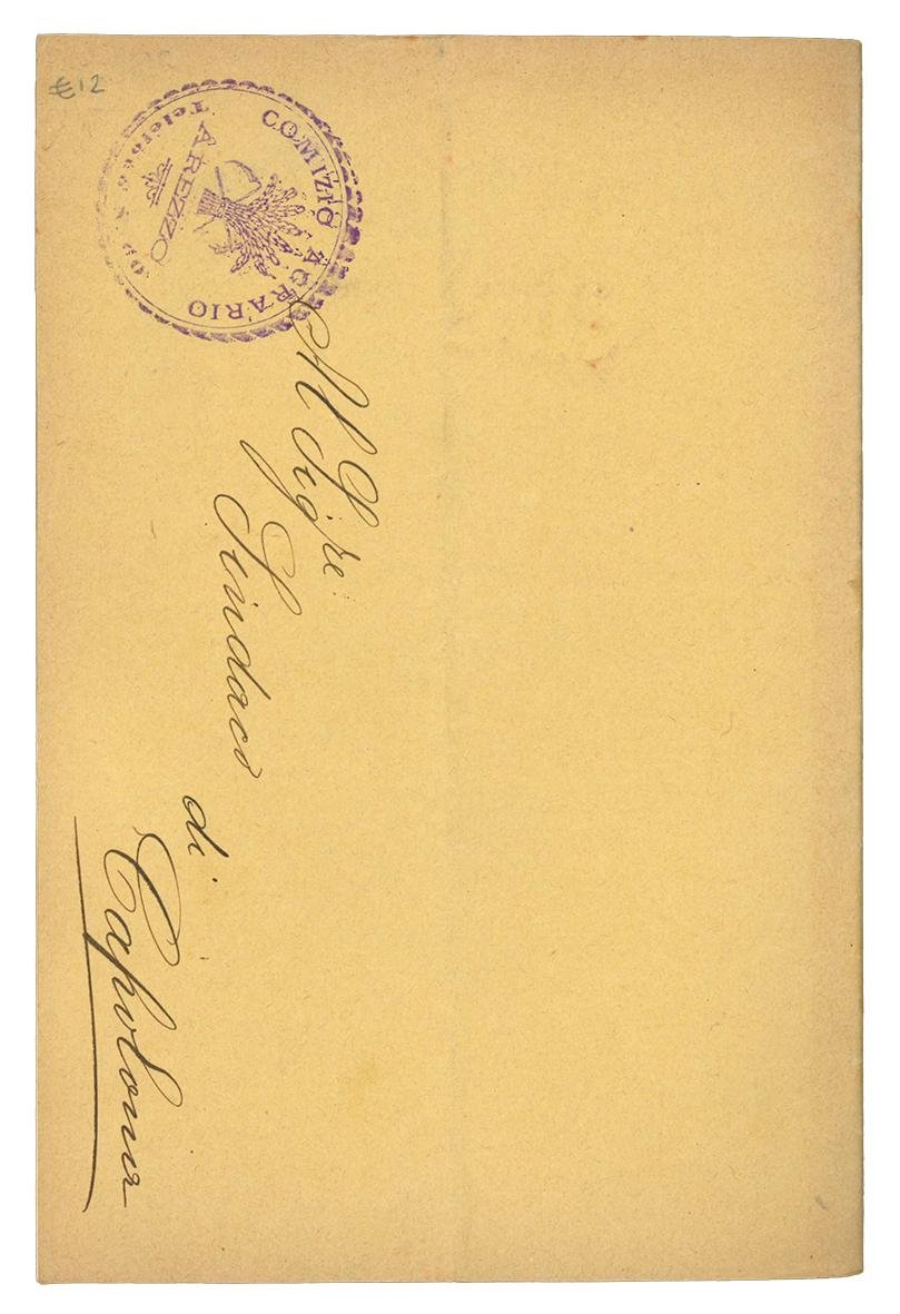 In 8vo (mm 240x160); pp. 15, [1]. Carta leggermente ed uniformemente brunita. Piegatura verticale che interessa l'intero opuscolo. Copertina editoriale. Timbro del "Comizio Agrario di Arezzo" e dedica manoscrita ("Al Sig.re Sindaco di Capolona") alla copertina posteriore.