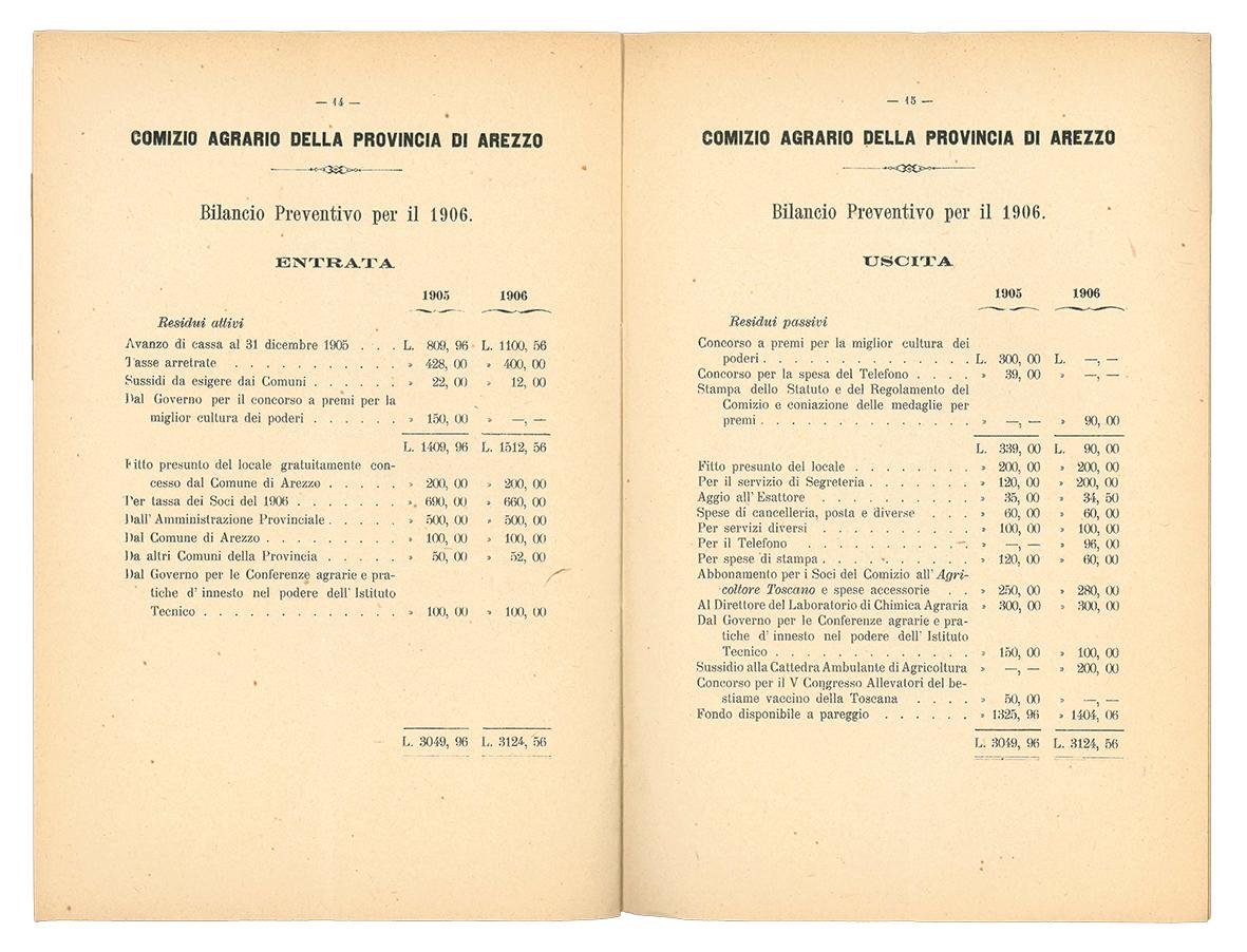 Comizio agrario della provincia di Arezzo. Resoconto morale ed economico della gestione 1905 e bilancio preventivo 1906.