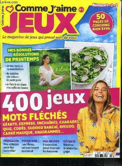 Comme j'aime jeux magazine de jeux qui prend soin de vous N°8- mes bonnes resolutions de printemps, la meditation, le cuisine de saison: le petit pois, faire le tri dans la salle de bain, coaching bien etre, mots fleches, tricoter le nouveau yoga,.
