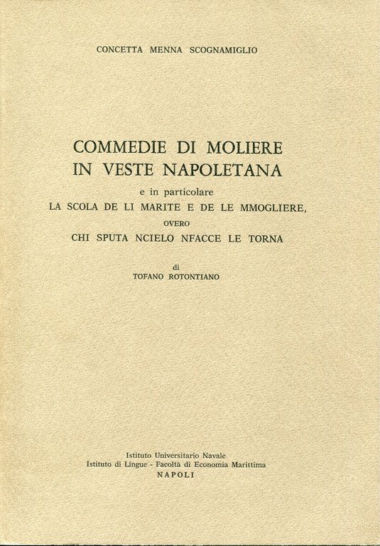 Commedie di Moliere in veste napoletana : e in particolare La scola de li marite e de le mmogliere, overo Chi sputa ncielo nfacce le torna di Tofano Rotontiano