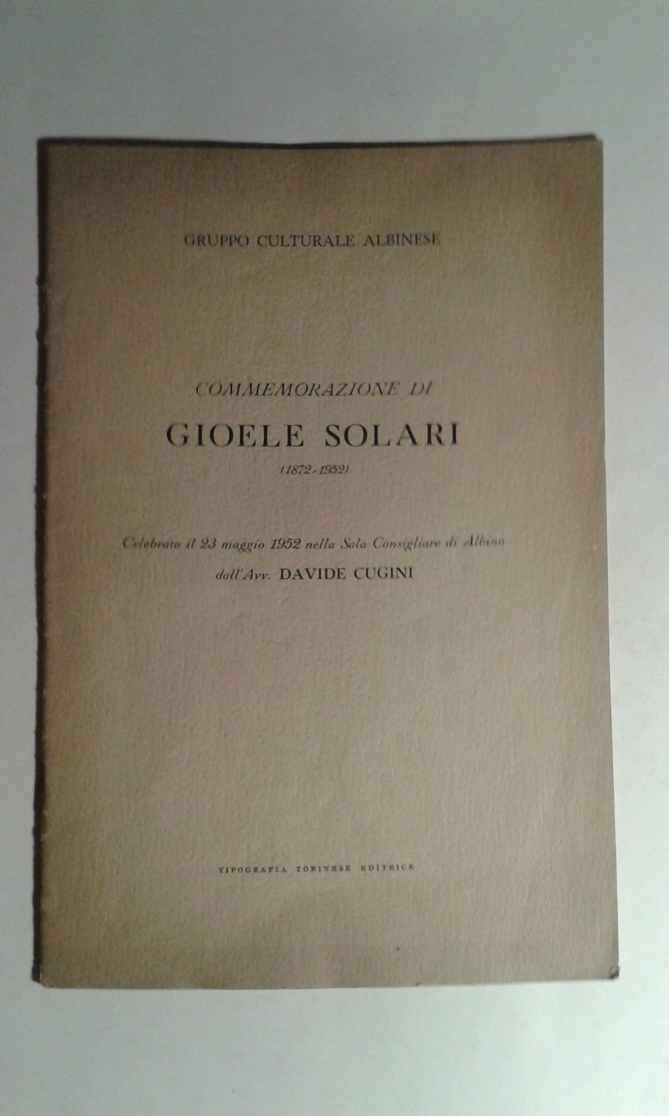 Commemorazione di Gioele Solari (1872 - 1952). Celebrata il 23 maggio 1952 nella