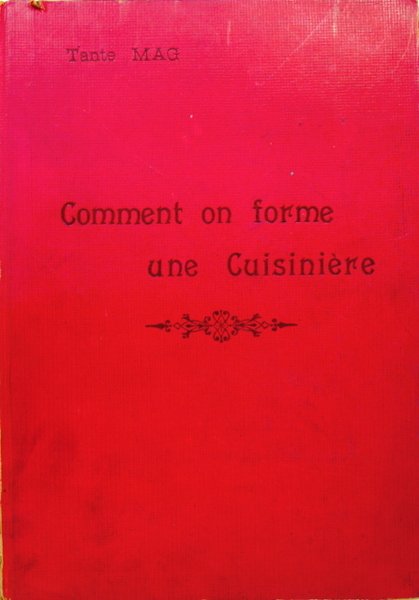Editions de Culina, aux Etablissements “La cornue”, 1913. Grand in/8 cartonnage éditeur rouge, 73 p., Déchirure sur le dos sans manque.A L’office, l’installation d’une cuisine, les provisions.
