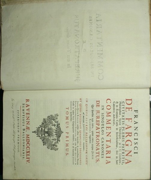 Commentaria in singulos canones de jurepatronatus, qui sparsim tam intra, quam extra corpus juris canonici vagantur