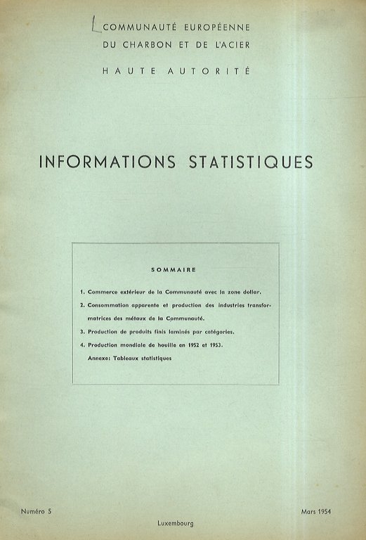 COMMUNAUTÉ EUROPEENNE DU CHARBON ET DE L'ACIER. Informations statistiques. Numero 5. Mars 1954.