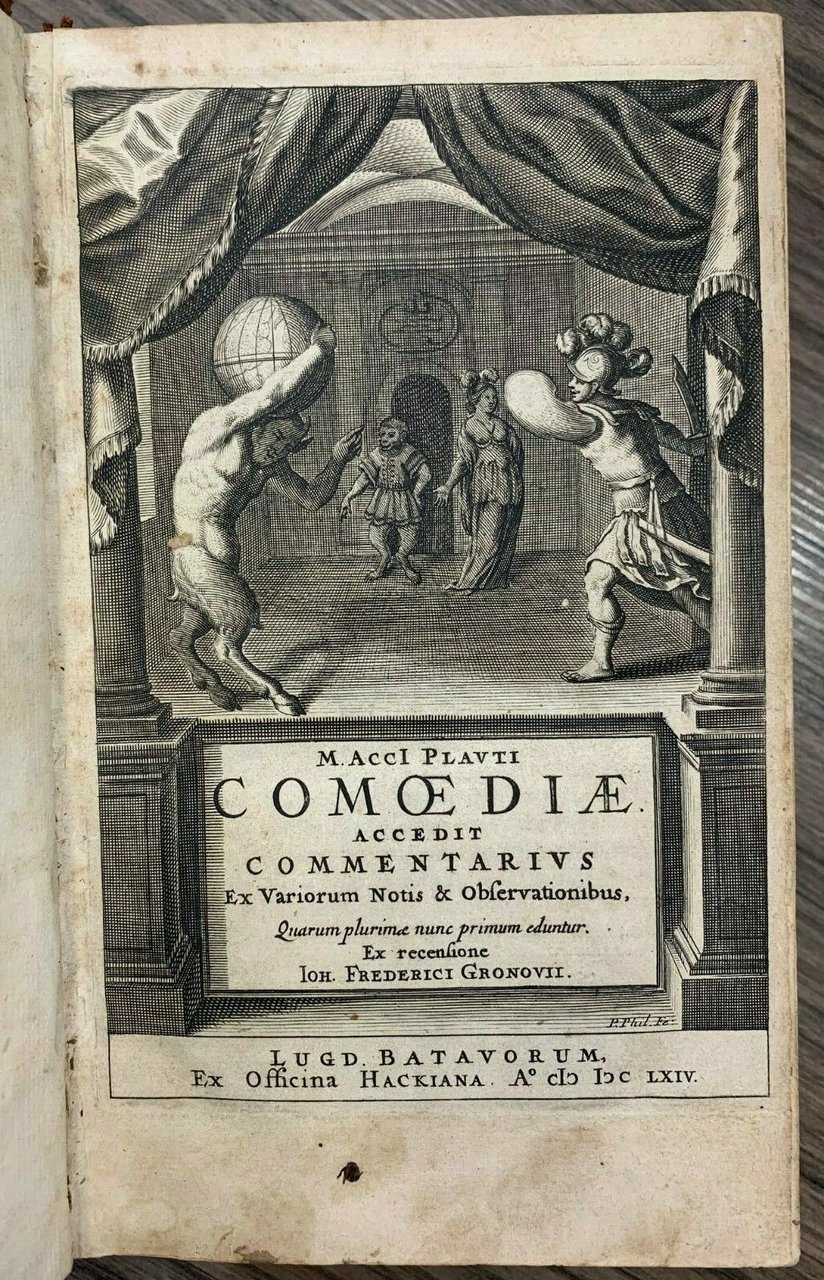 Accedit commentarius Ex Variorum Notis & Observationibus. Qarum pluriae nunc primum eduntur. Ex recensione Joh. Frederici Gronovii. Lugd. Batavorum. Ex Officina Hackiana 1664, 16°, pp. 16nn-1154+56nn. Bellissimo frontespizio figurato finemente inciso. Leg. coeva, tass. sbiadito, segni del tempo e mancanze al dorso e al piatto. Interno buono.