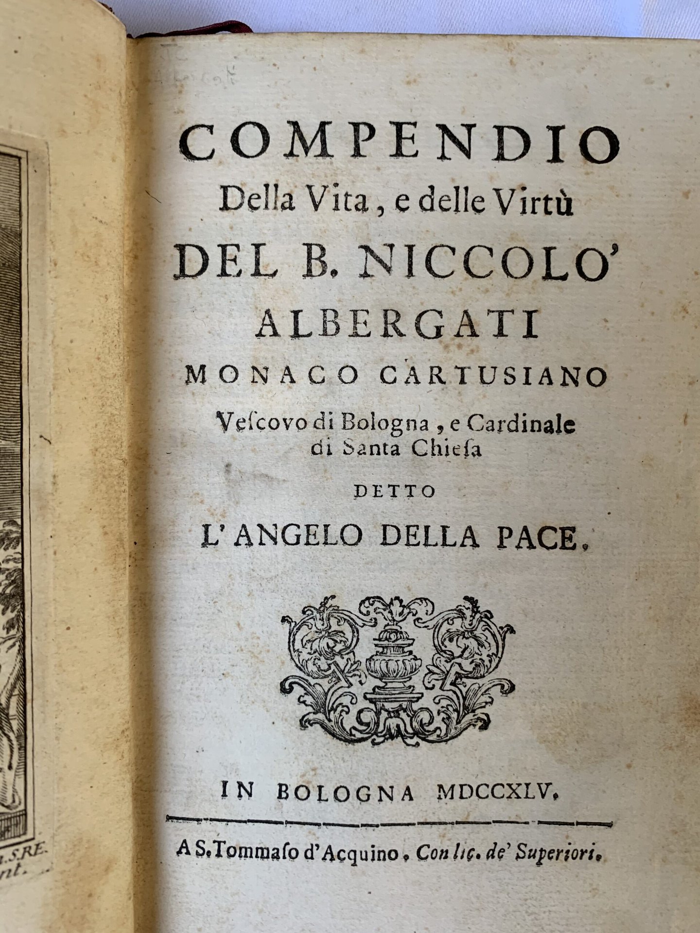 COMPENDIO DELLA VITA e delle Virtù del B. Niccolò Albergati Monaco Cartusiano Vescovo di Bologna. detto l'Angelo della Pace.
