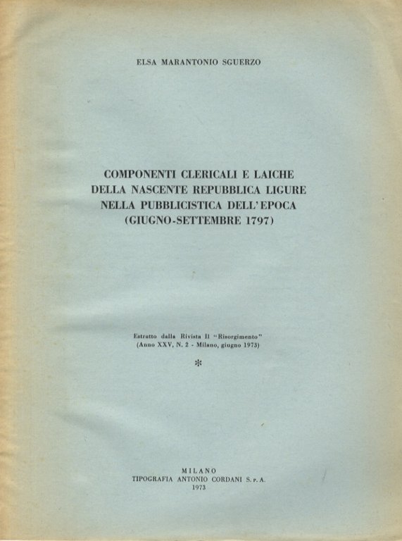 Milano, Tipografia Antonio Cordani, 1973, in-8, brossura editoriale, pp. 45. Estratto dalla Rivista Il "Risorgimento" (Anno XXV, N. 2).