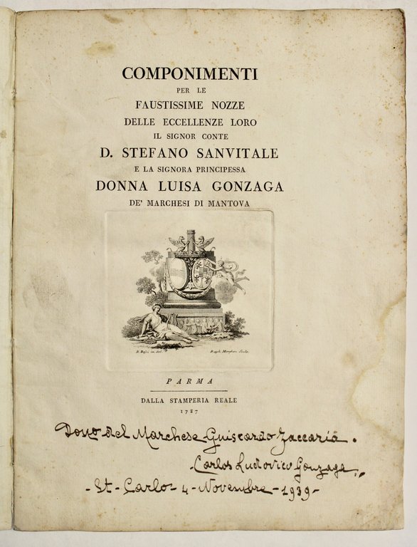 Componimenti per le faustissime nozze delle eccellenze loro il signor conte D. Stefano Sanvitale e la signora principessa Donna Luisa Gonzaga de' marchesi di Mantova.