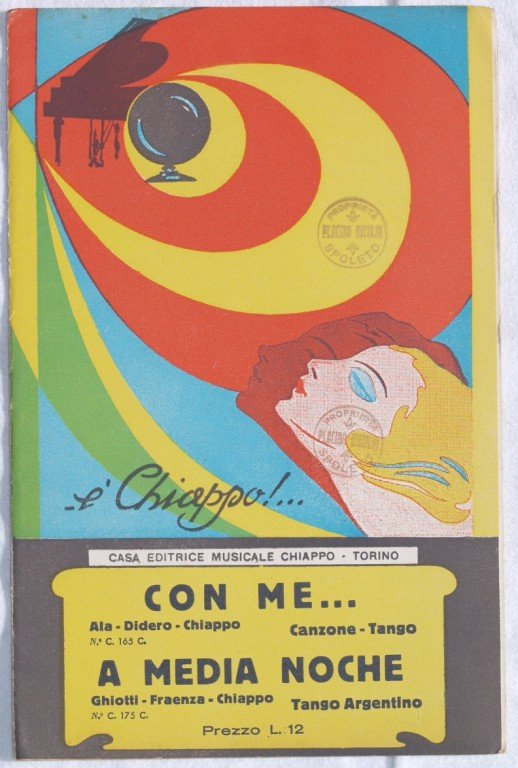 In 8. cm 27x17,5. pp. 19. Partitura completa per orchestra del 1932 di due canzoni. Caratteristica copertina decorata dell'epoca. Ex libris sulla copertina. Ottime condizioni. A complete score for orchestra of 1933. Carachteristic decorated cover of that period. Ex libris in the cover. Very good conditions.