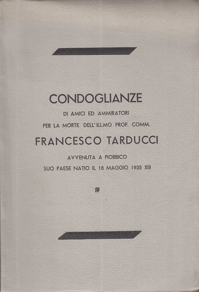 Condoglianze Di Amici Ed Ammiratori Per La Morte Dell'ill.mo Prof. Comm. Francesco Tarducci Avvenuta A Piobbico Suo Paese Natio Il 18 Maggio 1935 Xiii