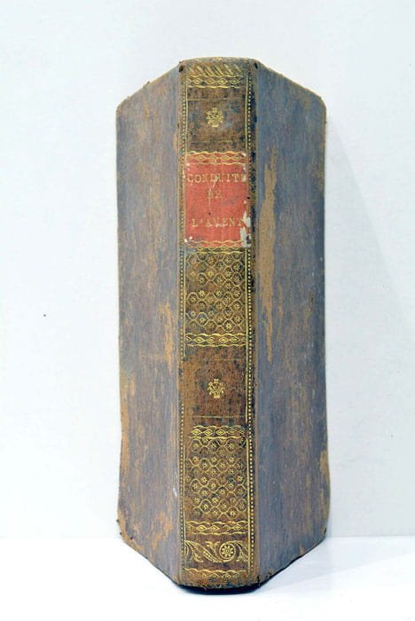 276 pages. 4 feuillets. (17,5x10,5cm). Plain cuir. Dos lis orné avec titre en lettres dorées. Couverture très frottée avec manques de cuir. Coins et coiffes émoussés. Publié à Avignon en 1812, cet ouvrage du Révérend Père Avrillon propose une réflexion et un guide spirituel pour l'observation du temps de l'Avent, période de préparation à la célébration de Noël dans la tradition chrétienne. À une époque marquée par les bouleversements politiques et sociaux suite à la Révolution française et au milieu des guerres napoléoniennes, ce texte offre un espace de recueillement et de foi. Il reflète la quête de sens et de spiritualité de l'époque, tout en s'inscrivant dans une longue tradition de méditations chrétiennes. Papier légèrement bruni avec taches éparses. Interieur légèrement sali. Coins pliés.