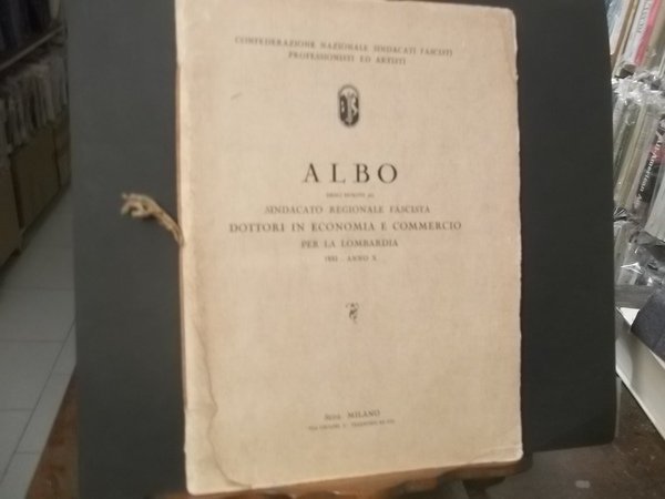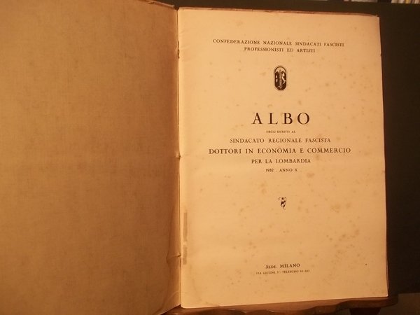CONFEDERAZIONE NAZIONALE SINDACATI FASCISTI PROFESSIONISTI ED ARTISTI - ALBO DEGLI ISCRITTI AL SINDACATO REGIONALE FASCISTA DOTTORI IN ECONOMIA E COMMERCIO PER LA LOMBARDIA 1932