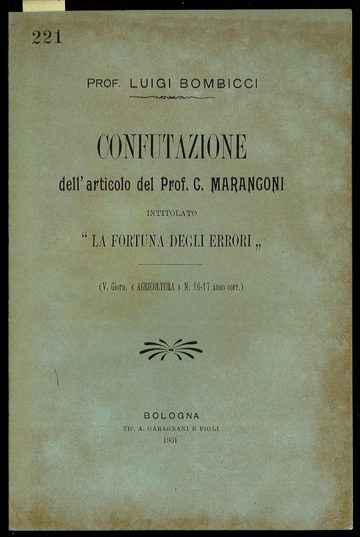 Confutazione dell’articolo del Prof. C. Marangoni intitolato "La fortuna degli errori"
