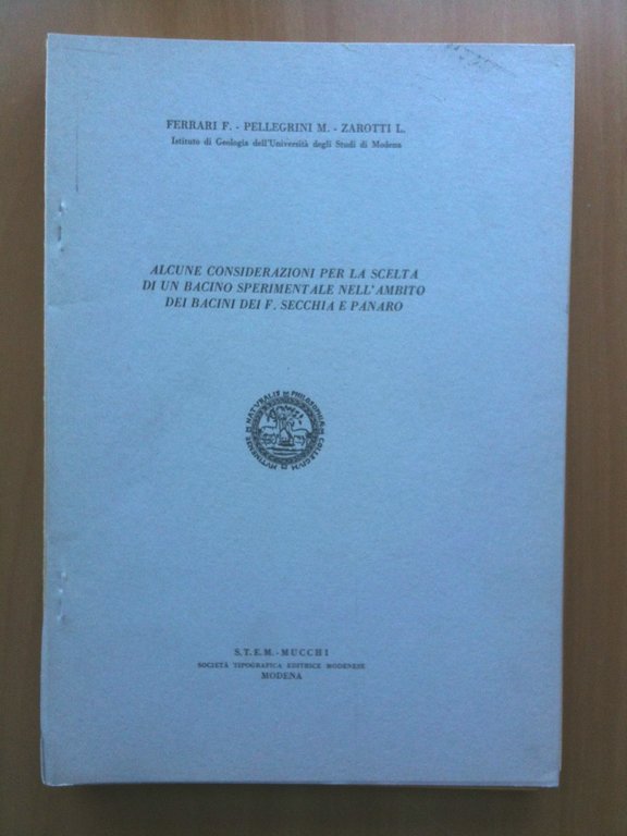 ALCUNE CONSIDERAZIONI PER LA SCELTA DI UN BACINO SPERIMENTALE NELL'AMBITO NEI BACINI DEI F. SECCHIA E PANAROFerrari F. Pellegrini M. Zarotti L.Istituto di Geologia dell'Università degli Studi di Modena Atti Soc. Nat. Mat. di Modena 197548 pagine Formato 17x24 (130 g)E3321