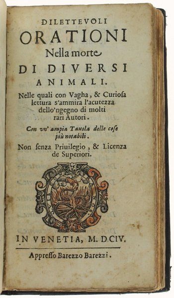 CONSIGLI DE GLI ANIMALI CIOE' RAGIONAMENTI CIVILI + DISCORSO DEL PARLARE + DILETTEVOLI ORATIONI NELLA MORTE DI DIVERSI ANIMALI