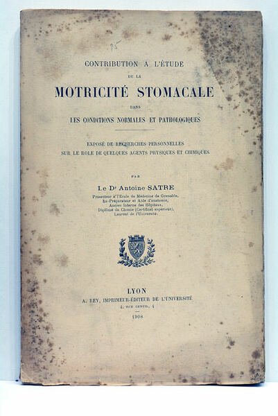Contribution à l'étude de la motricité stomacale dans les conditions normales et pathologiques. Exposé de recherches personnelles sur le role de quelques agents physiques et chimiques.