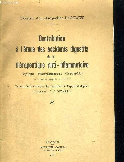 CONTRIBUTION A L ETUDE DES ACCIDENTS DIGESTIFS DE LA THERAPEUTIQUE ANTI INFLAMMATOIRE - ASPIRINE - PHENYLBUTAZONE - CORTICOIDES - TRAVAIL DE LA CLINIQUE DES MALADIES DE L APPAREIL DIGESTIF