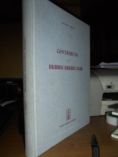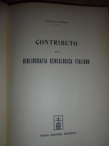 Antonio, Gheno. Bologna, Forni Editore, 1971. Contributo alla Bibliografia Genealogica Italiana. Ristampa anastatica dell' edizione di Roma, 1924. In-8°, cartonato edit. 297 pp. Esemplare in ottimo stato di conservazione. Neg. lett. mod. mob. H