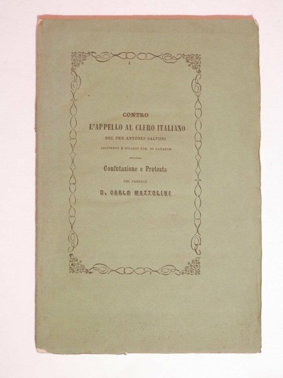 Contro l'appello al clero italiano del pre Antonio Salvoni. Confutazione e protesta del parroco D. Carlo Mazzolini