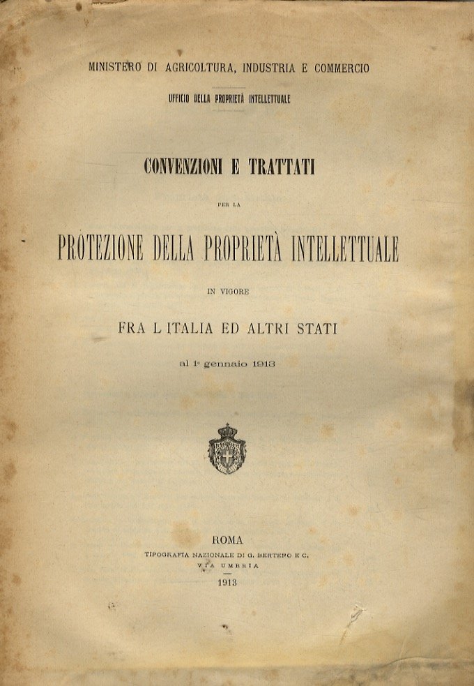 CONVENZIONI e Trattati per la protezione della proprietà intellettuale in vigore fra l'Italia ed altri Stati al 1° gennaio 1913.