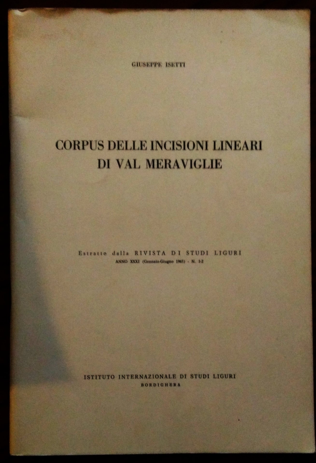 Bordighera, Istituto Internazionale di Studi Liguri, 1965. 8°, pp. 110, 66 illustrazioni, brossura editoriale. Bella copia.