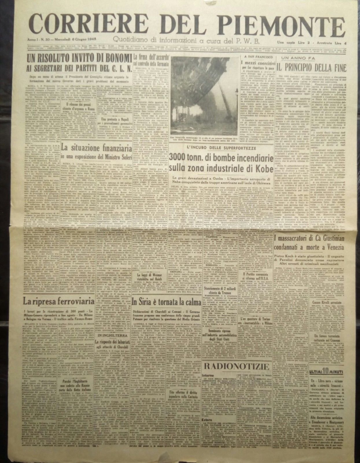 Corriere del Piemonte 6 giugno 1945 quotidiano