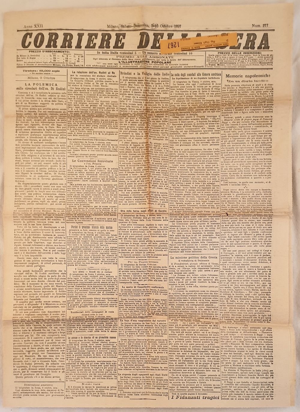 CORRIERE DELLA SERA MILANO SABATO DOMENICA 9-10 OTTOBRE 1897