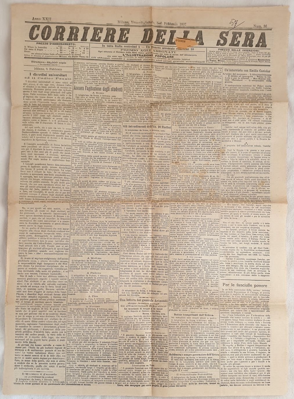 CORRIERE DELLA SERA MILANO VENERDI SABATO 5-6 FEBBRAIO 1897